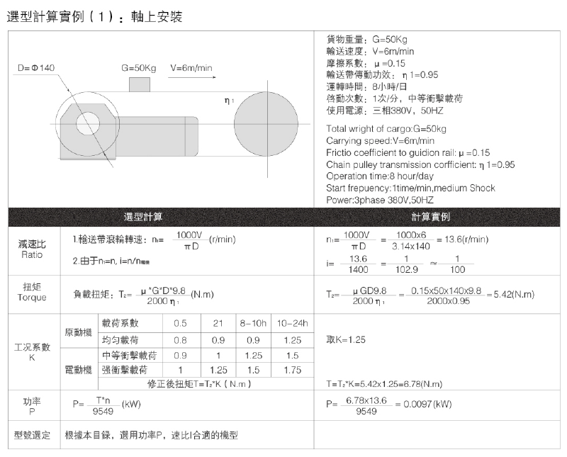 山藤減速機選型實例之軸上安裝。山藤減速機是可以通過多種方式安裝傳動的,今天就先來探討軸上安裝的山藤減速機選型計算。
